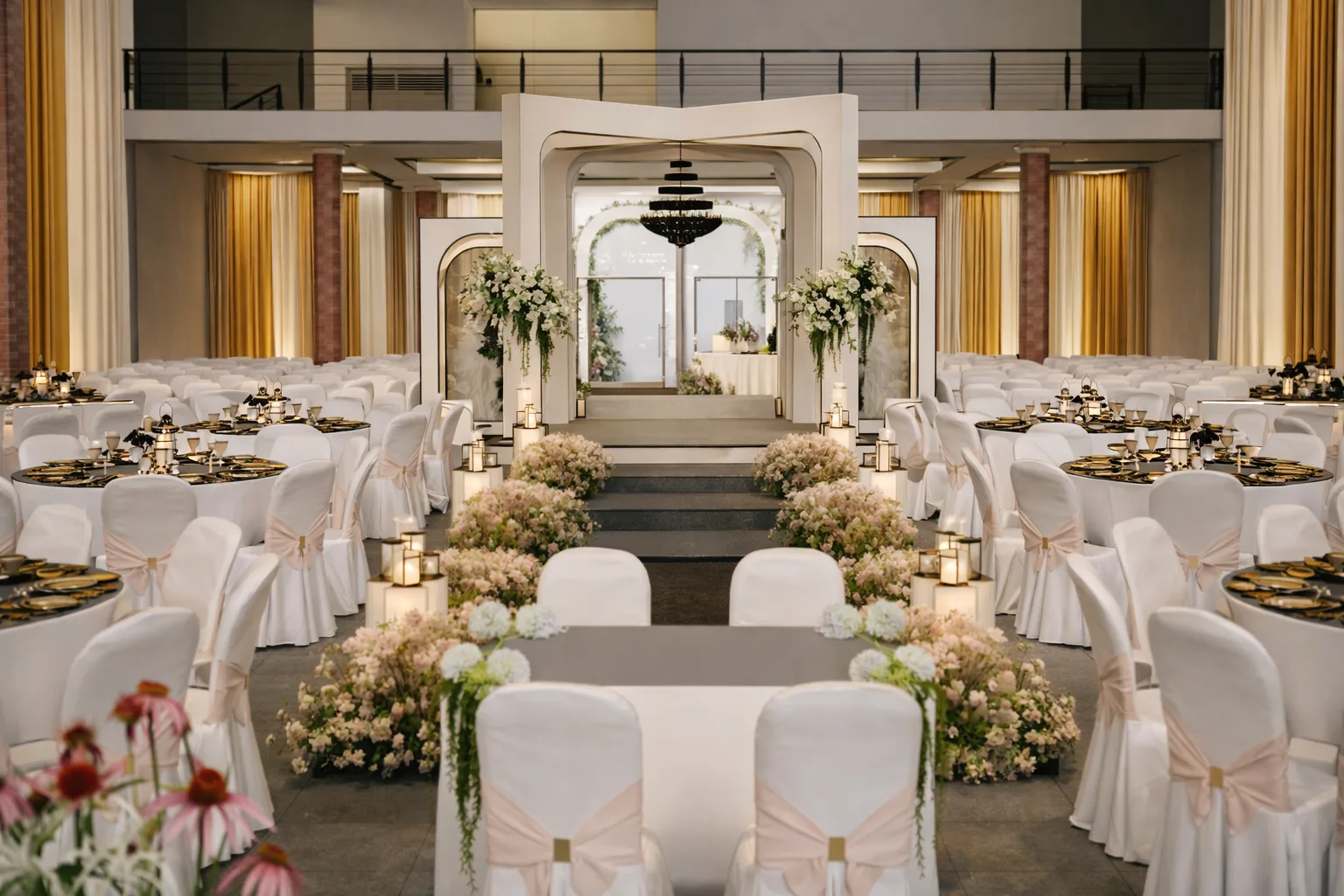 Gedung Aceh Sepakat Heritage Signature Package dirancang untuk pasangan yang ingin merayakan pernikahan dalam skala besar dengan nuansa kekeluargaan, tradisi, dan nilai religius yang kuat. Berlokasi satu kompleks dengan Masjid Raya Aceh Sepakat, venue ini memberi kesinambungan yang rapi antara prosesi ibadah dan perayaan, dalam suasana yang megah namun tetap khidmat. Cocok untuk ±800–1000 tamu, perayaan ditata untuk mengakomodasi kebersamaan lintas generasi dengan alur yang tertib dan nyaman.