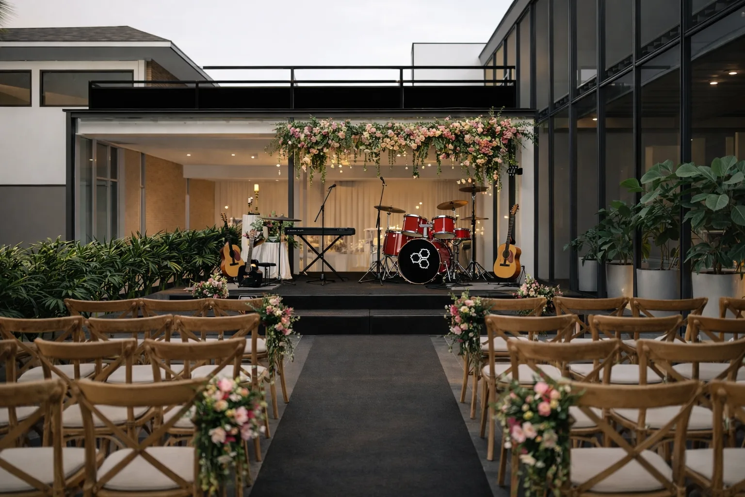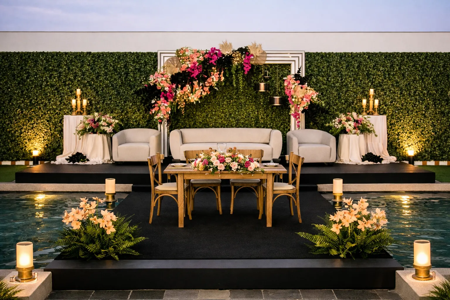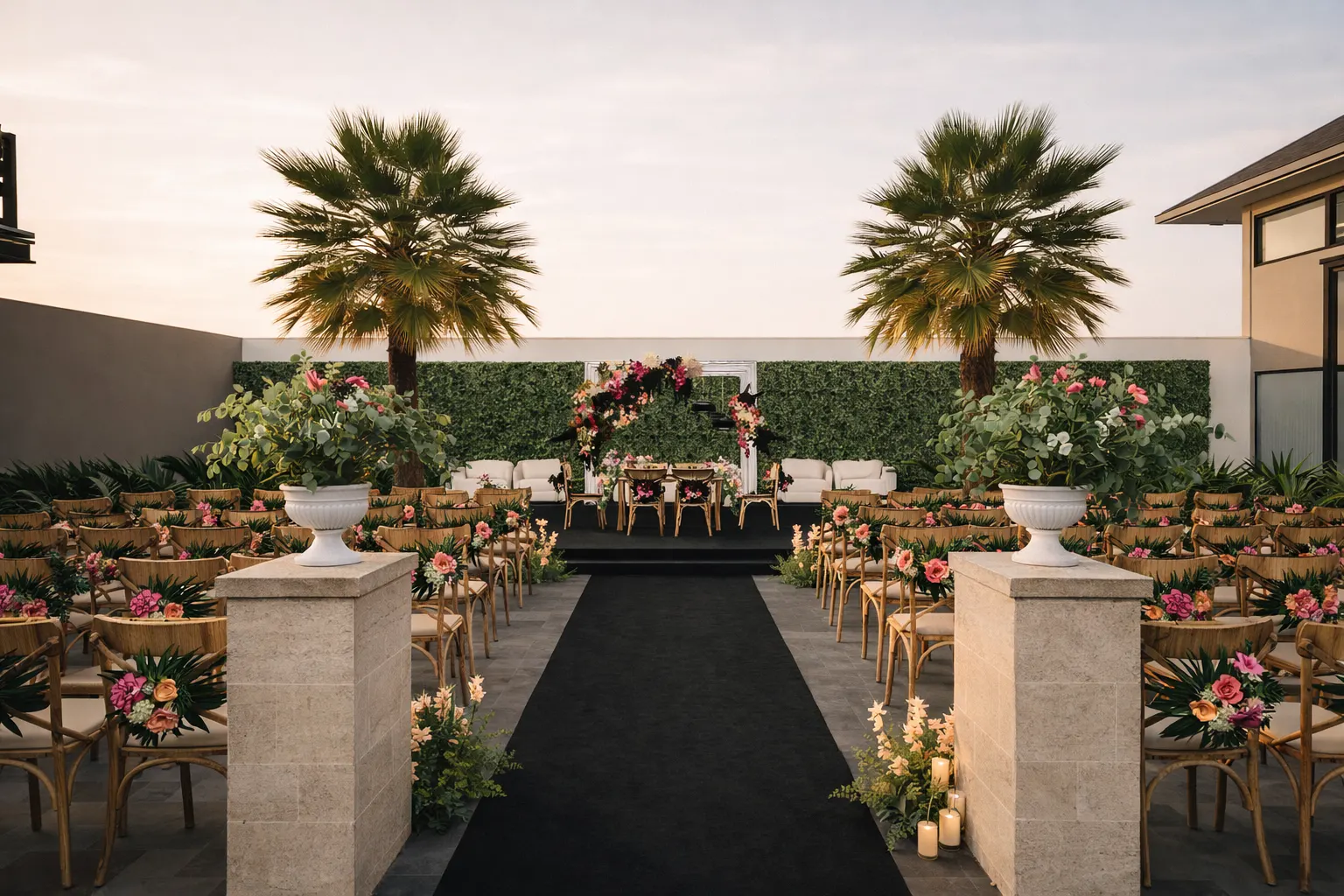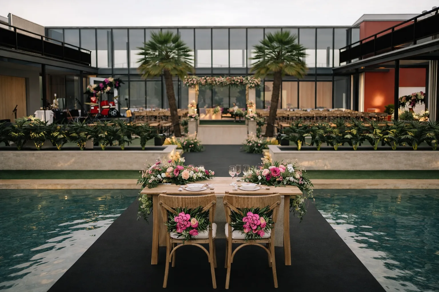 Kini Kitchen Tropical Villa Celebration dirancang untuk pasangan yang ingin merayakan pernikahan dalam suasana hangat, modern, dan dekat dengan orang orang terdekat. Berlangsung di restoran berdinding kaca dengan pemandangan kolam, perayaan terasa terang, kontemporer, dan intimate, menghadirkan nuansa ala vila atau lifestyle dining modern tanpa kesan hall yang kaku. Cocok untuk skala perayaan hingga ±500 tamu, acara ditata agar terasa ringan, personal, dan relevan dengan gaya hidup masa kini.