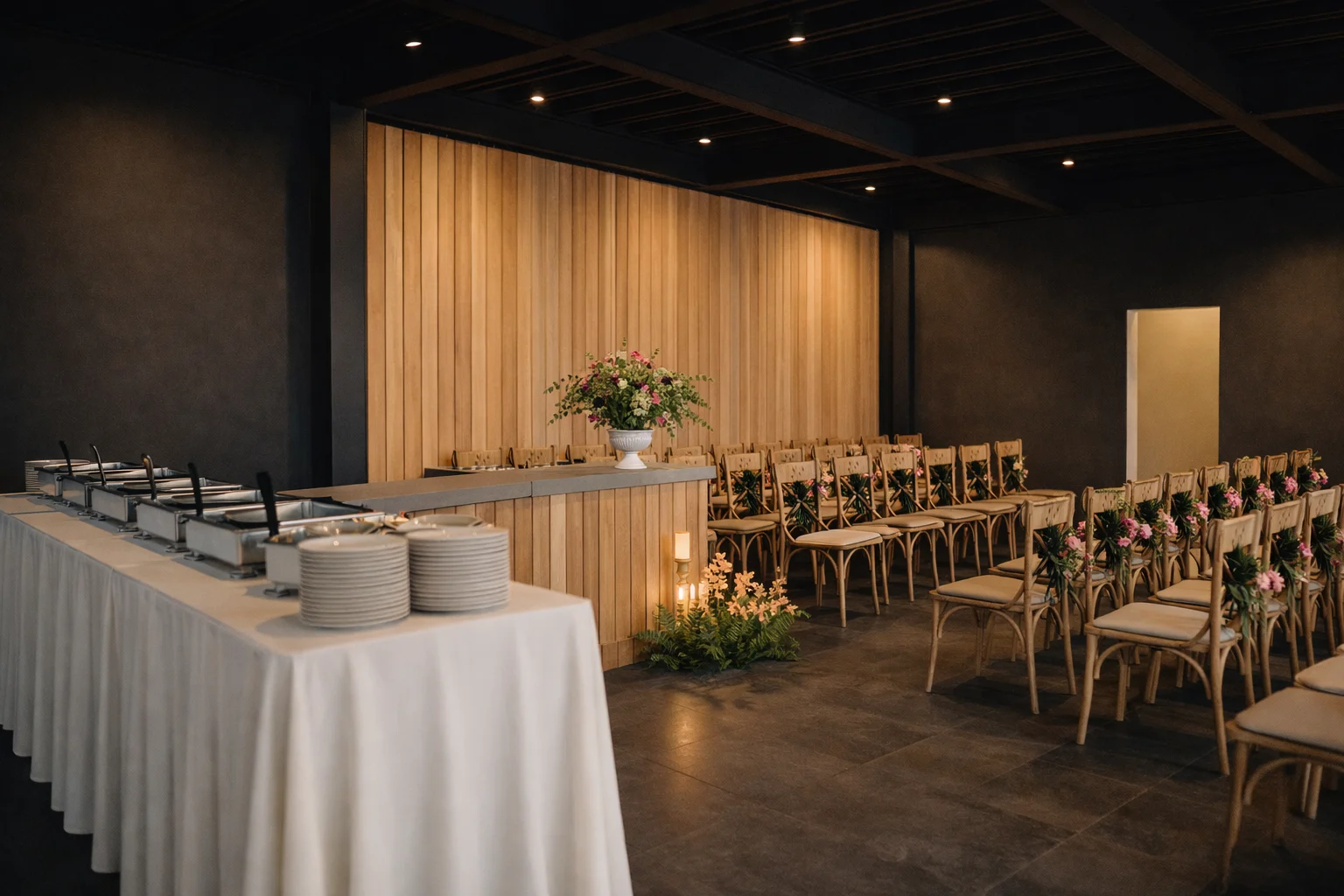 Paket ini disusun tanpa layanan catering, memberikan keleluasaan penuh bagi pasangan untuk menentukan pilihan jamuan secara mandiri sesuai preferensi pribadi, konsep acara, maupun kebutuhan keluarga.